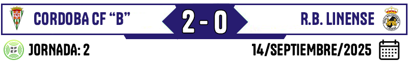 La Real Balompédica Linense regresó sin puntos de su enfrentamiento contra el Córdoba B, en su primer desplazamiento de la temporada, correspondiente a la segunda jornada en el grupo X de la Tercera Federación. La Balona cayó derrotada por 2-0 en un partido muy parecido al que brindó en el Ciudad de La Línea frente al Chiclana CF, sumando dominio durante los principios de cada una de las partes pero sin goles. En la segunda mitad, protagonizó más tiempo de juego, aunque sin sacar el provecho esperado y que todos desean, unas veces por la falta de acierto en los remates, y otras por la indecisión de algunos de sus jugadores para rematar o disparar a la puerta contraria. Puede quejarse de un gol anulado muy dudoso, pero en el cómputo general no estuvo acertado el equipo de David Sánchez