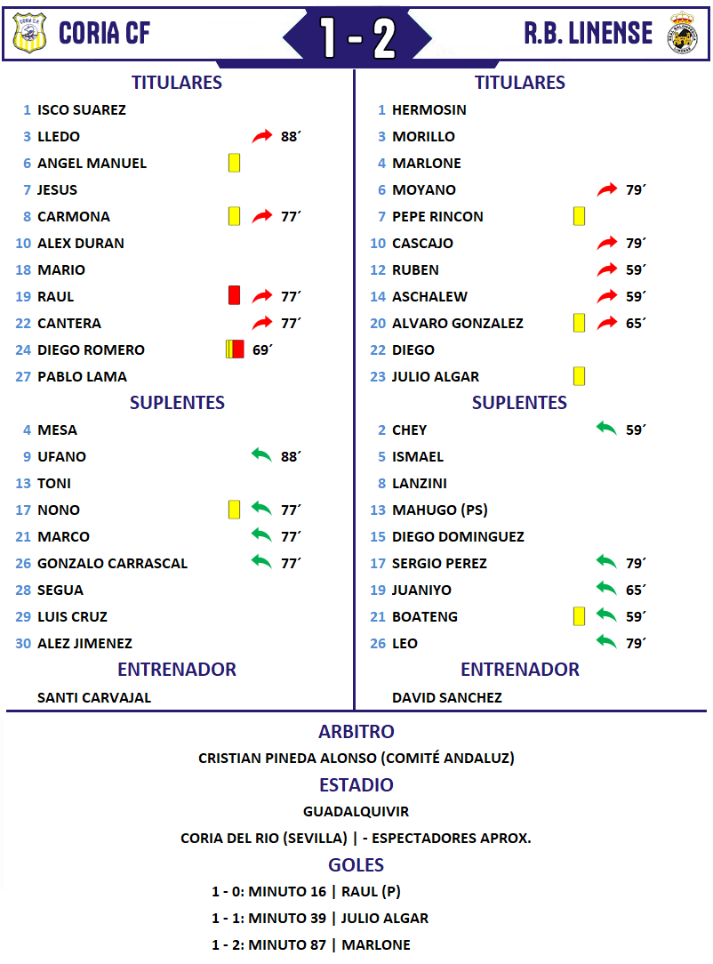 - Remontada en Coria con goles de Julio Algar y Marlone.