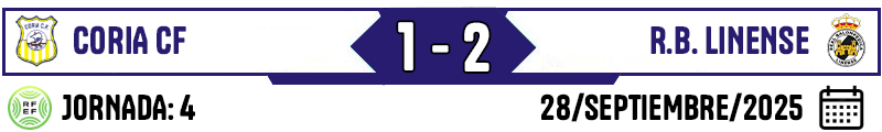 La Real Balompédica Linense logró en Coria su primera victoria de la temporada (1-2), en la cuarta jornada del grupo X de Tercera Federación. Los centrales Julio Algar y Marlone remontaron como artífices de los goles albinegros y protagonizaron con remates muchas de las ocasiones más acertadas de un equipo en el que Sanmartí, el último fichaje que hizo el equipo de David Sánchez, demostró ser un jugador de garantías para el centro del campo. La victoria supone un bálsamo para una Balona que había arrancado con un solo punto en los tres primeros partidos y que con este impulso sale de los puestos de descenso.