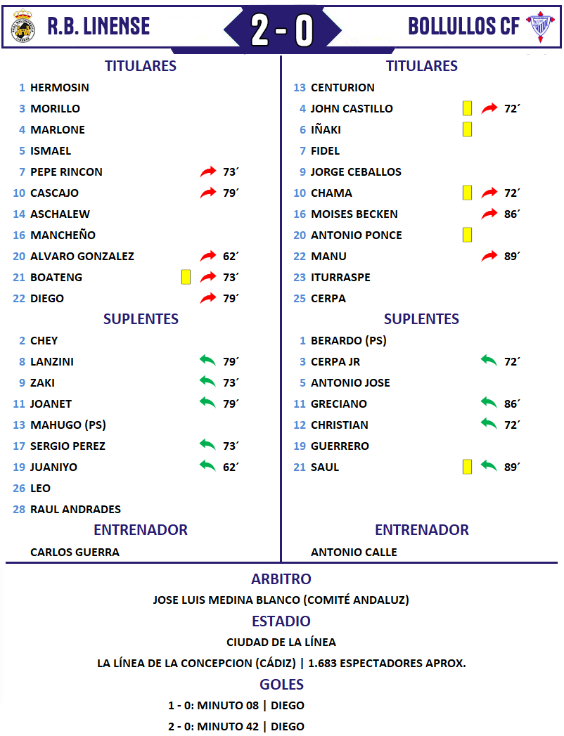 • La Balona logra un triunfo incontestable sobre un rival directísimo, el Bollullos, con dos goles de Diego en el primer tiempo.